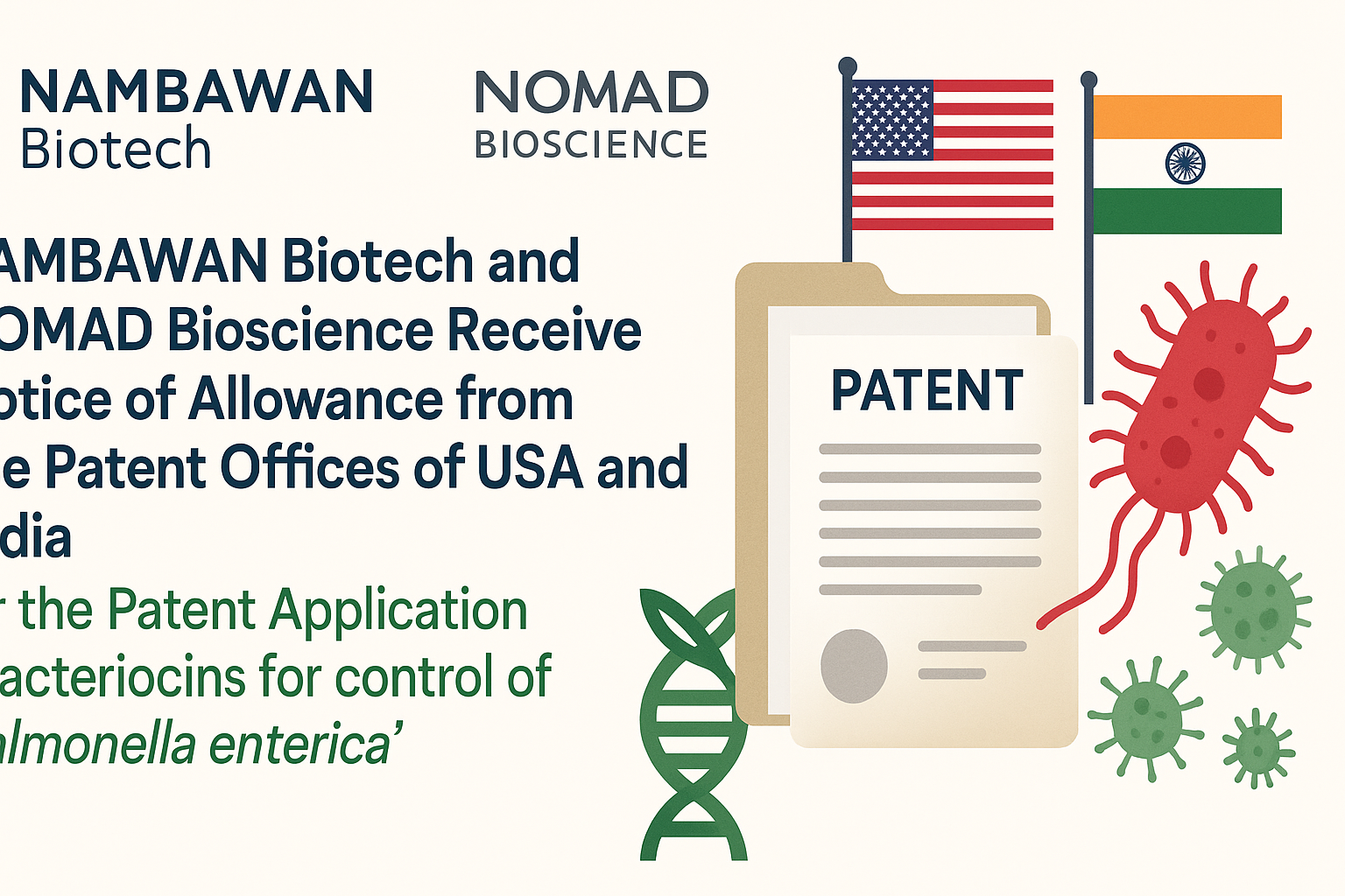 NEWS NAMBAWAN Biotech and NOMAD Bioscience Receive Notice of Allowance from the Patent Offices of USA and India for the Patent Application ‘Bacteriocins for control